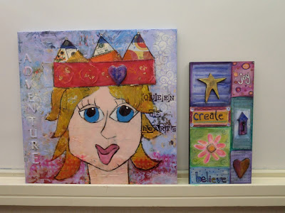 artwork--gel medium, beads, cloth, paper, embellishments, etc.  I also love to use inspirational quotes and
