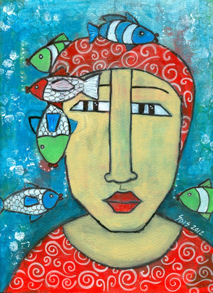 Your artwork is lovely! It is colorful and unique! I always amazes me, that eventhough we all are from all over this world, we, as artists, still have the same passion for art, the same whispers, and similar goals we love to reach! I may never meet you in person but I feel like I know you, now, and that we are friends, fellow artists, because of the wonderful age of computers! Thank you letting us get to know you and for sharing not only your artwork, but take a peek into your creative space! Your journey has certainly lead to you having wings.... Fly, baby, fly!!! Joan